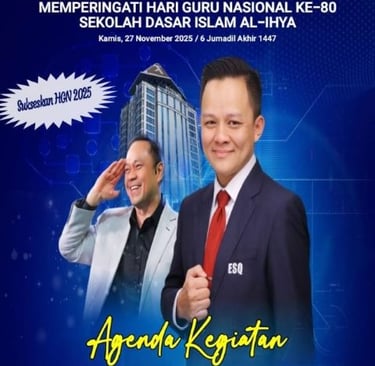 Hari Guru jatuh pada tanggal 25 November 2025. Sekolah Al Ihya juga akan memperingati Hari Guru, namun pelaksanaanya akan dilaksanakan pada tanggal 27 November 2025. Adapun kegiatan yang akan dilaksanakan pada tanggal tersebut adalah : 1.) Upacara Peringatan Hari Guru 2.) ESQ (Pemateri : Bapak Ramdani, ST, MM. “License Trainer : DR. HC. Ary Ginanjar Agustian”) 3.) Fun Game dan Bahasa Inggris dari LIA
